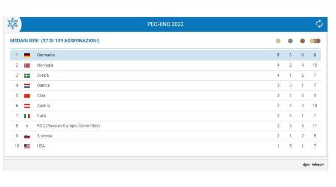 medagliere olimpiadi invernali 2022