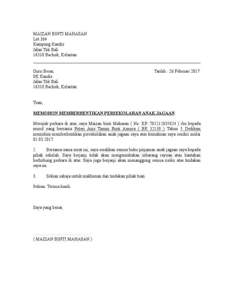 Surat Berhenti Sekolah Agama Latest Letter Website